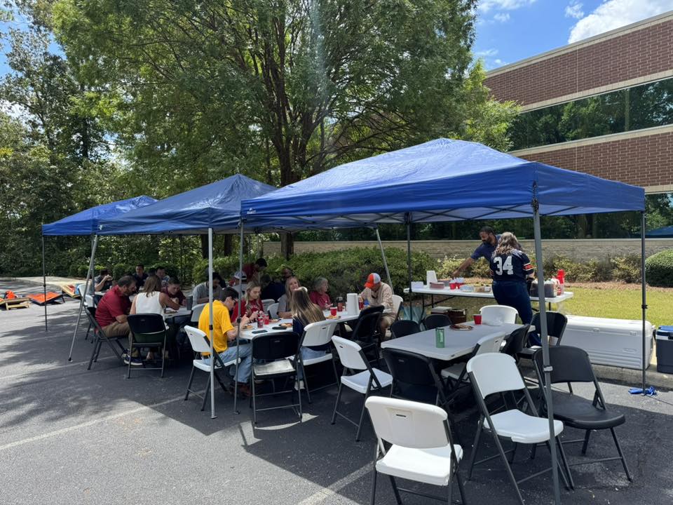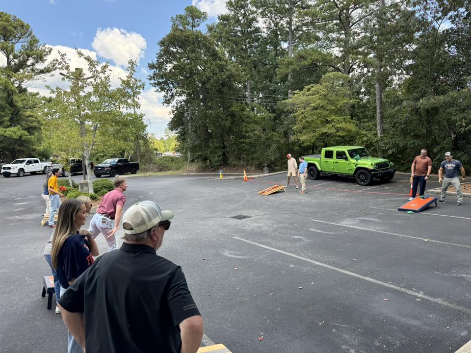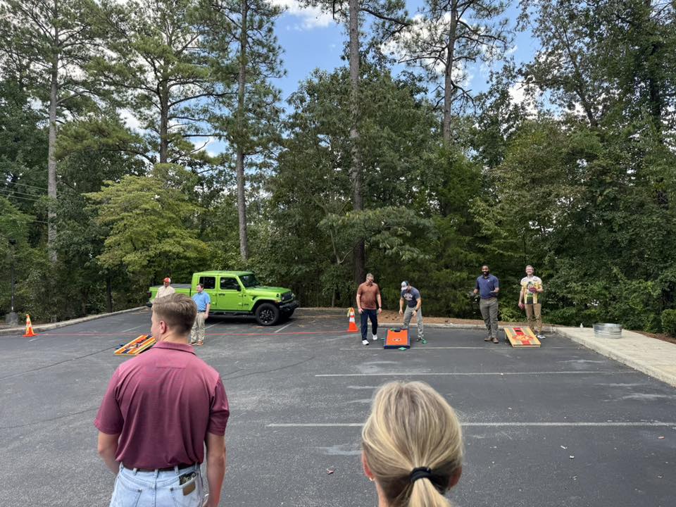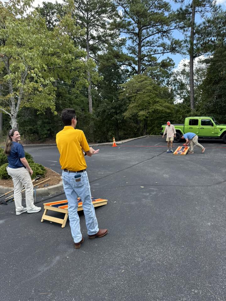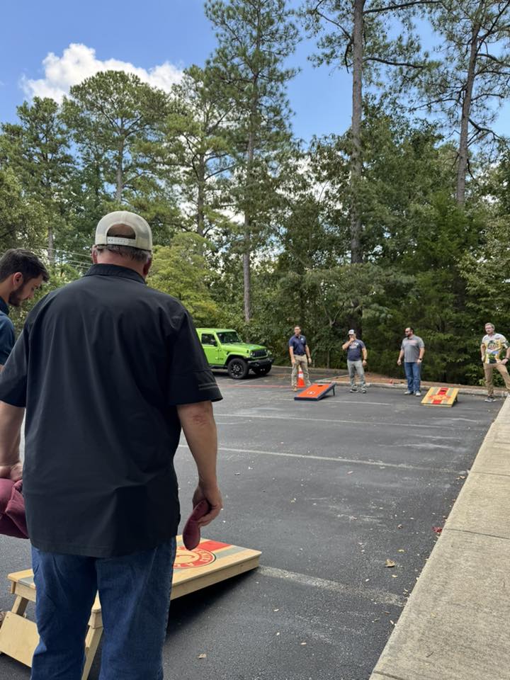 Krebs had a football season kickoff party on Friday. Congratulations to this year’s cornhole tournament champions, Brandon and Jonah!